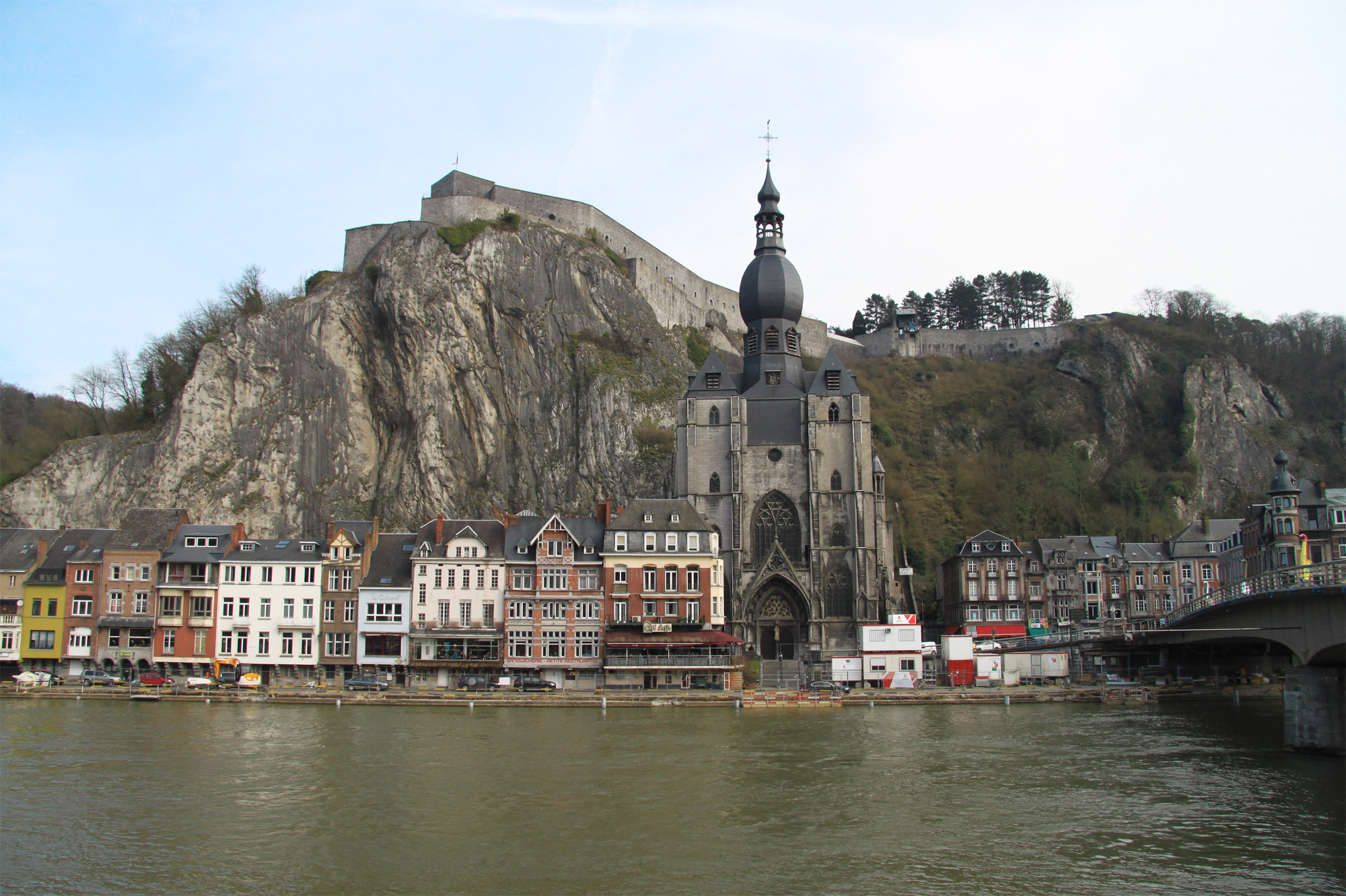 De citadel van Dinant is niet te missen, maar de Collégiale Notre-Dame evenmin. De kerk is ingeklemd tussen de rotsen en het water en valt op door de peervormige klokkentoren die boven de stad uitsteekt. De binnenzijde van de kerk is ruimtelijk en dat komt door het vele licht dat via de ramen naar binnen kan schijnen. De glas-in-lood ramen behoren tot de grootsten van Europa. De kerk is zowel van de buiten- als de binnenzijde indrukwekkend om te bekijken.