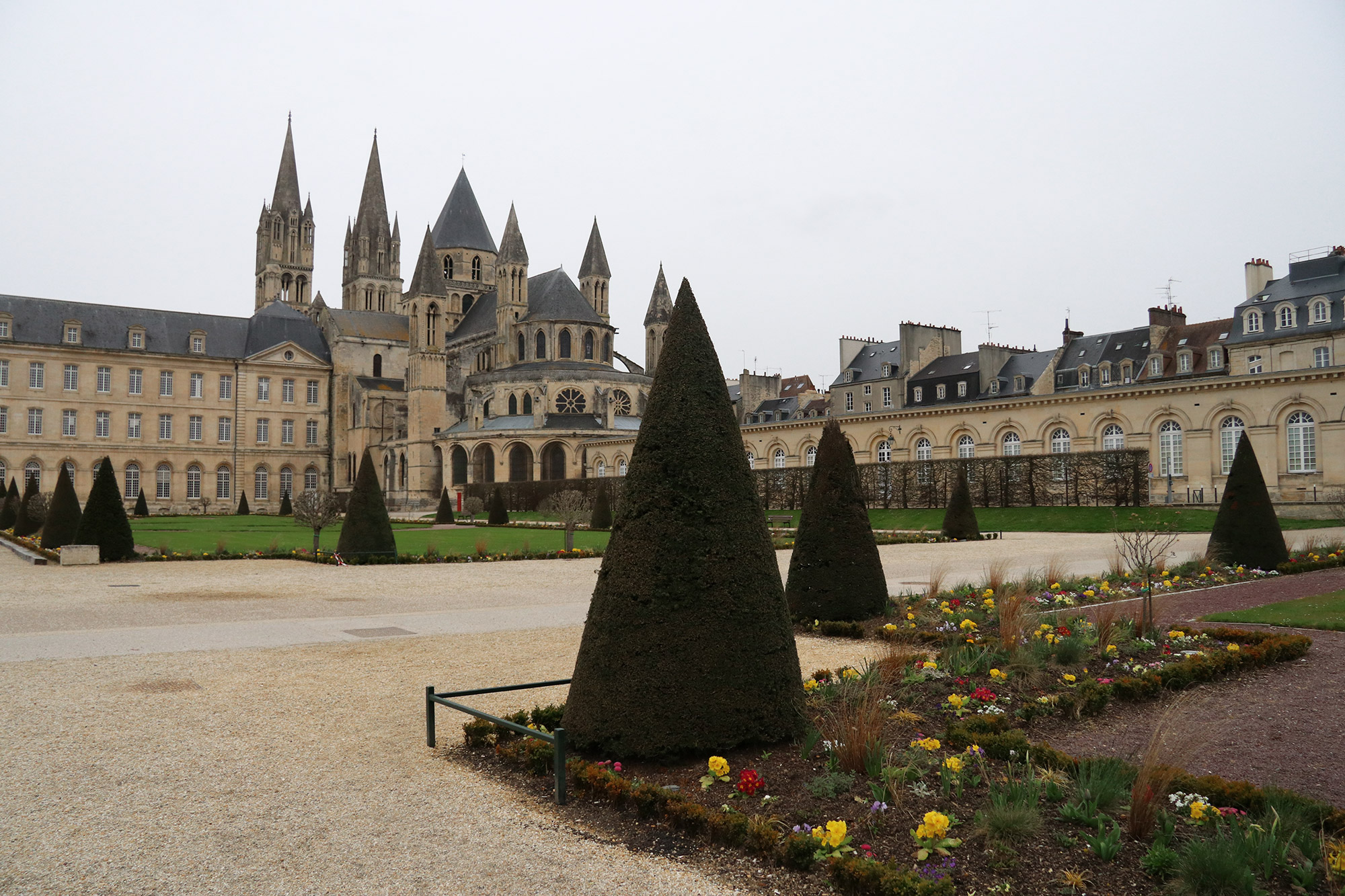 Na de verovering van Normandië in 1204 door Filip-August, belegerden de Engelsen Caen in 136 en 1417. De stad werd geplunderd en 3000 burgers kwamen om het leven. 600 jaar later kende de stad wederom tegenspoed gedurende de Tweede Wereldoorlog. De stad werd gebombardeerd en voor een groot deel verwoest tijdens Operatie Chamwood. Begin juli 1944 werd de stad bevrijd door de Britten en Canadezen. De Slag van Caen duurde twee maanden. Na de oorlog brak een periode aan van heropbouw. Een groot deel van de historische gebouwen werd verwoest, maar werden herbouwd en gerestaureerd. Veel gebouwen zijn gebouwd met kalksteen, afkomstig uit de stad of omgeving.