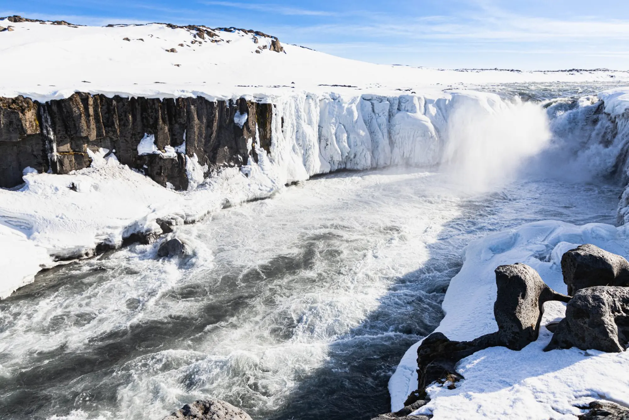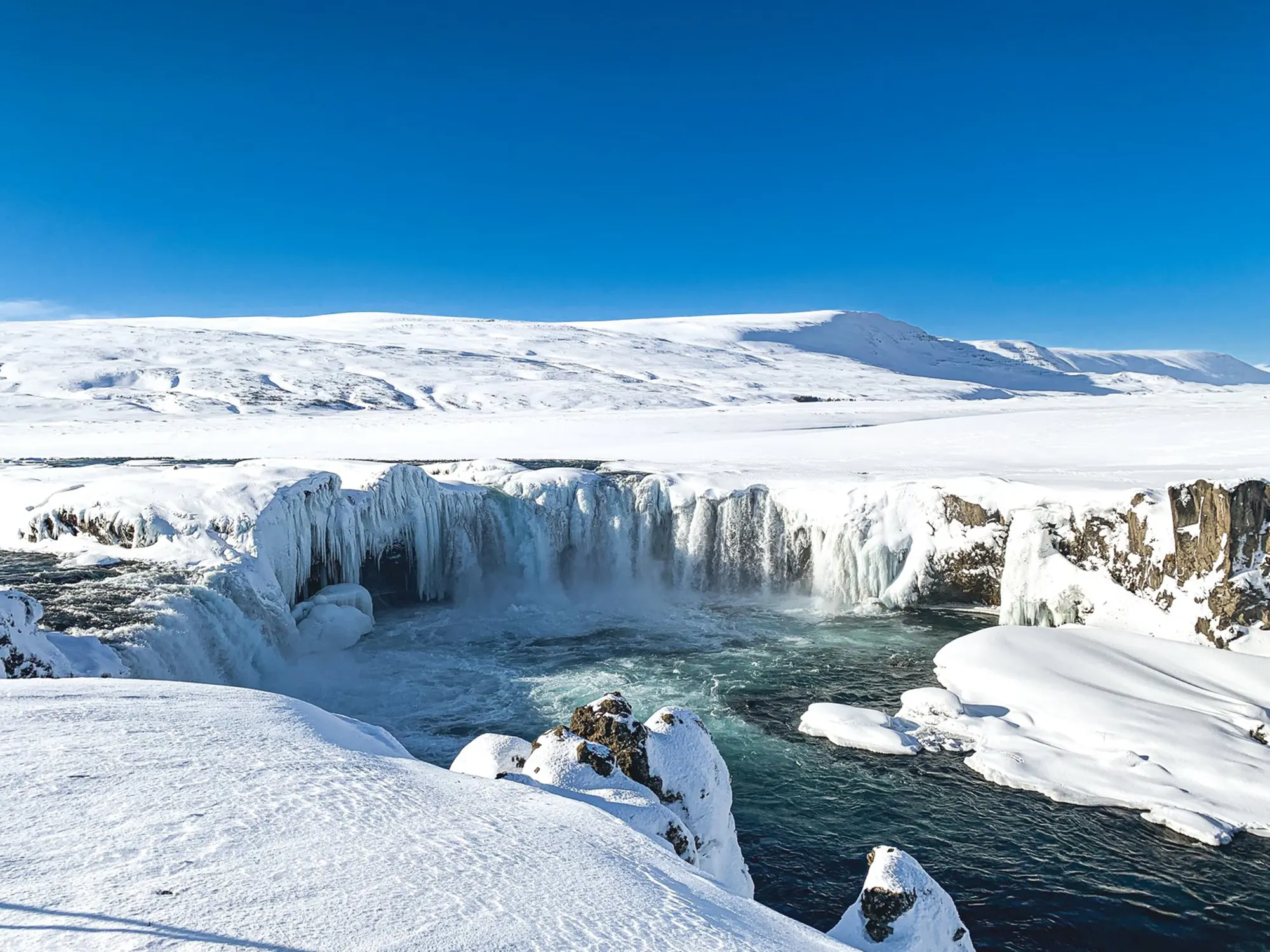 IJsland staat bekend om zijn ruige natuur en imposante watervallen. Een van de grootste trekpleisters is Dettifoss, de krachtigste waterval van Europa. Met een hoogte van 44 meter en een breedte van 100 meter stort het water hier met enorme kracht naar beneden. In de winter hangt er vaak een mysterieuze mist boven de kloof en vormt zich ijs langs de randen van de rotsen. Maar ook de Goðafoss, de waterval van de goden, krijgt in dit seizoen een sprookjesachtig karakter wanneer het water deels bevroren is.