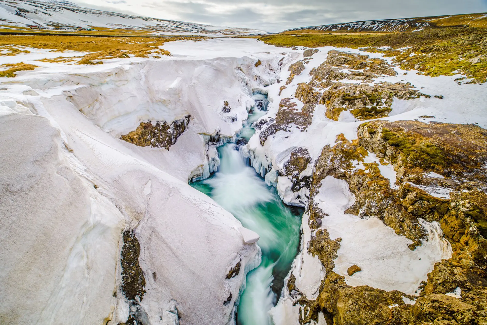 Naast deze beroemde watervallen zijn er nog meer natuurplekken die in de winter indruk maken. In de winter heerst bij het fjord van Héðinsfjörður een bijzondere stilte, omringd door besneeuwde bergen. De kloof van Kolugljúfur laat zien hoe water en ijs samen een spectaculair landschap vormen. Bij de vulkaan Krafla vind je Stóra Víti, een kratermeer dat in de winter vaak deels bevroren is, waardoor het diepe blauw nog sterker afsteekt tegen de witte omgeving. En in de regio rond Mývatn wisselen bevroren meren, lavavelden en geothermische gebieden elkaar af, waardoor je steeds weer een ander decor aantreft.