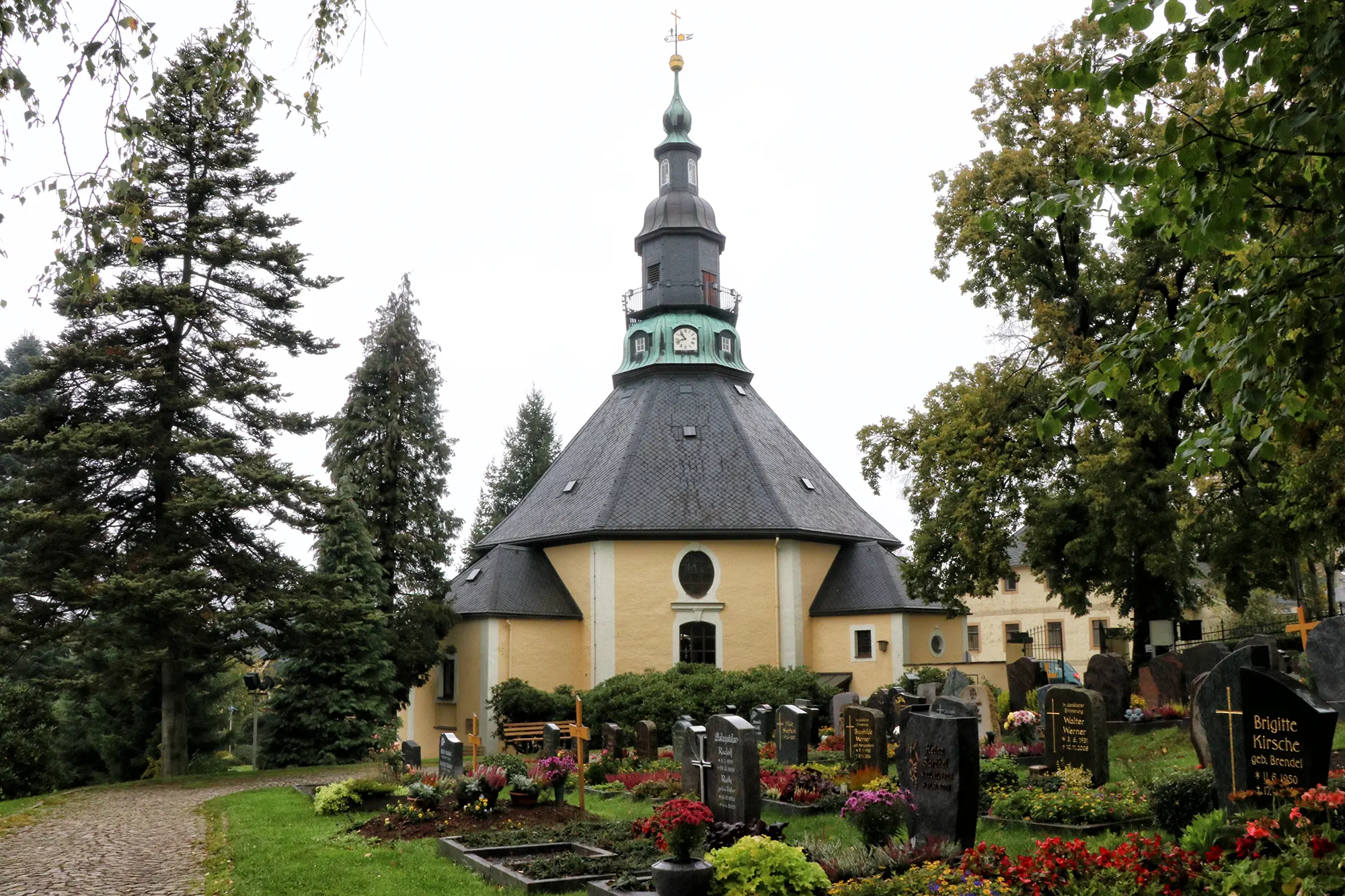 Net buiten Olbernhau ligt de Bergkirche Oberneuschönberg, een klein barok kerkje uit de 18e eeuw. Het werd gebouwd voor de mijnwerkers en ambachtslieden uit de omgeving. Dankzij de ligging op een heuvel heb je er een mooi uitzicht over het dal en de bossen rond Olbernhau. Binnen valt vooral het vele hout op, wat de kerk een karakteristieke uitstraling geeft. De kerk ligt direct aan de route, dus loop zeker even binnen als je de kerk passeert.
