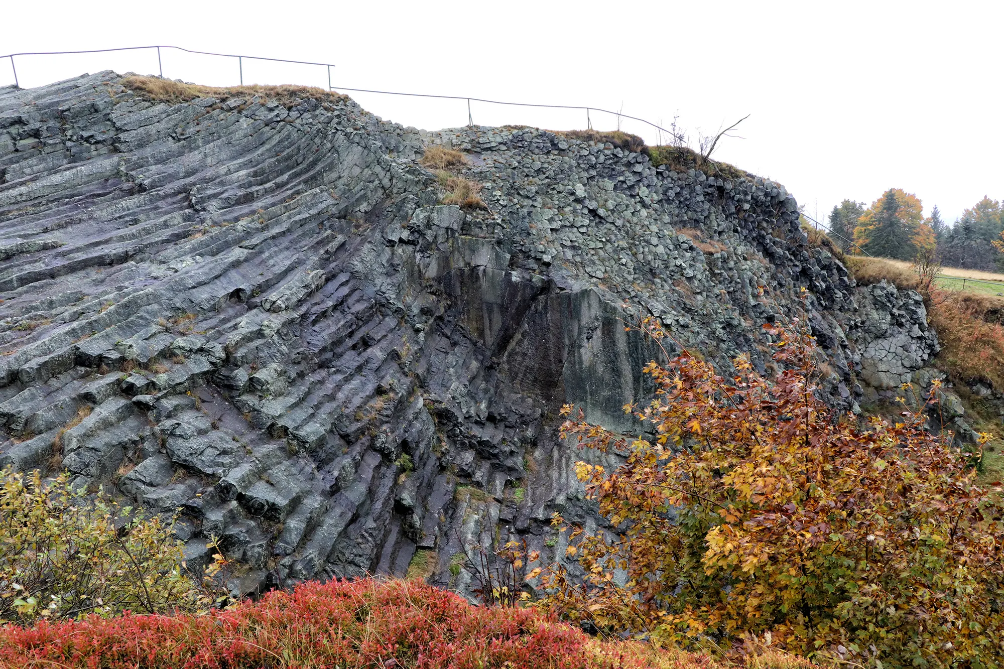 Bij Satzung ligt de 890 meter hoge Hirtstein. Direct onder de top bevindt zich een bijzondere basaltformatie in waaierstructuur. Deze is zo’n 25 miljoen jaar geleden ontstaan toen magma niet tot het oppervlak wist door te dringen en ondergronds afkoelde. De kenmerkende zuilenstructuur werd later blootgelegd door een steengroeve en staat sinds de 19e eeuw onder bescherming. Vanaf de top van de Hirtstein heb je een weids uitzicht over zowel het Saksische als het Boheemse Ertsgebergte. Boven op de berg ligt een berggasthof waar je kunt overnachten of iets kunt eten of drinken.