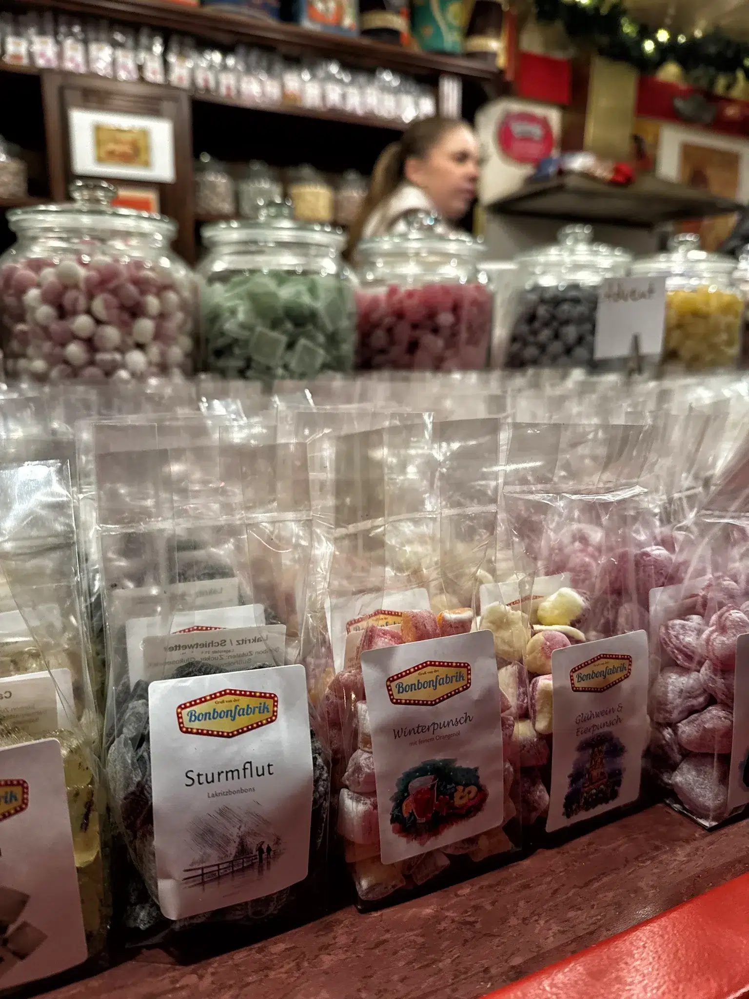 Iemand zei eens tegen mij dat een kerstmarkt vooral om eten en drinken draait. En eerlijk gezegd klopt dat volledig. Het aanbod in Düsseldorf is zó groot dat je bijna niet weet waar je moet beginnen. De klassiekers ontbreken natuurlijk niet: Bratwurst, Currywurst, Reibekuchen, Flammkuchen, Kartoffeltwister, Spätzle, gerookte zalm, gebakken champignons en allerlei zoete lekkernijen vind je op bijna iedere hoek.