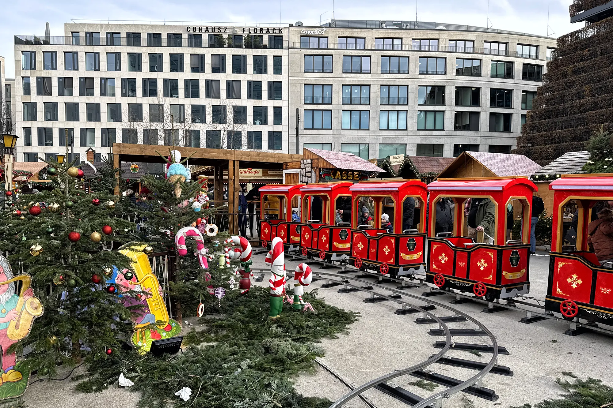 Op Schadowplatz vind je de Märchenmarkt, een sfeervolle kerstmarkt die door de vormgeving net even anders aanvoelt dan de rest van het centrum. De houten hutjes zijn versierd met uitgesneden silhouetten die speciaal door een kunstenaar zijn ontworpen. Sommige figuren bewegen zacht mee in het licht en dat geeft de markt een speels effect, vooral wanneer het donker wordt. Midden op het plein staat ook een mooie houten Weihnachtspyramide. Voor kinderen is er een nostalgische draaimolentje.