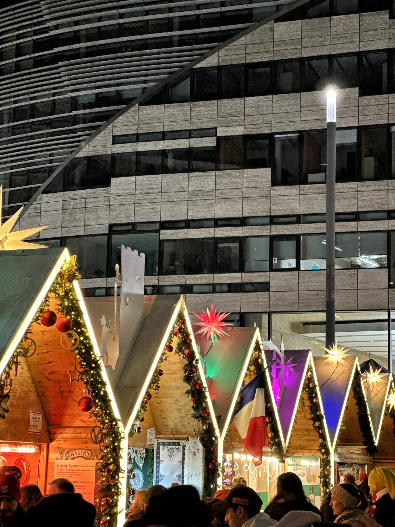 Op de promenade staan verschillende kraampjes met eten, drinken en ambachtelijk gemaakte producten. Je kunt er warme drankjes krijgen, kleine snacks proeven of leuke kerstcadeaus kopen. Bonbons in allerlei verschillende smaken, bio-Glühwein, kruiden uit de gehele wereld, Weihnachtssterne en bier likeur worden hier in de kraampjes verkocht. Opvallend is de historische tram die voor Glühwein wordt gebruikt en meteen zorgt voor een retro-uitstraling. Er zijn overdekte ruimtes ingericht waar je even rustig kunt zitten, soms in de vorm van tijdelijke restaurants of gezellige pop-up huiskamers.
