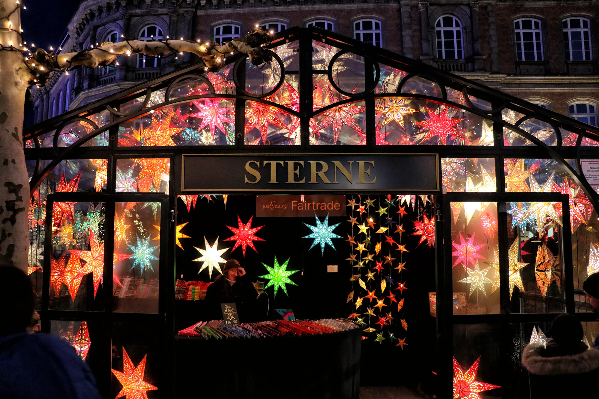 De verlichting bestaat vaak uit heldere sterren en lichteffecten die het plein een winterse uitstraling geven. De kraampjes staan dicht bij elkaar en bieden een mix van eten, drinken en kleine cadeauartikelen.