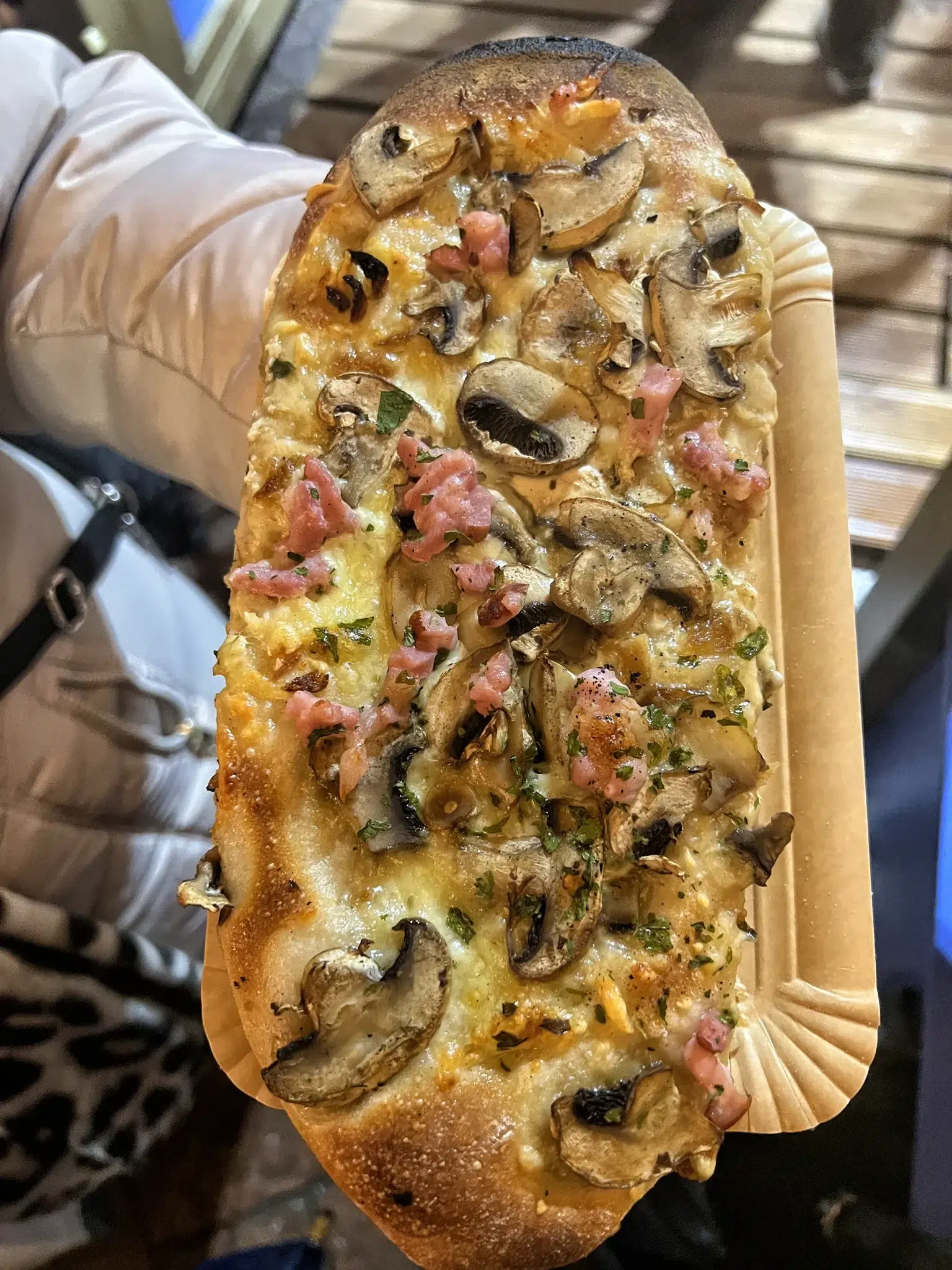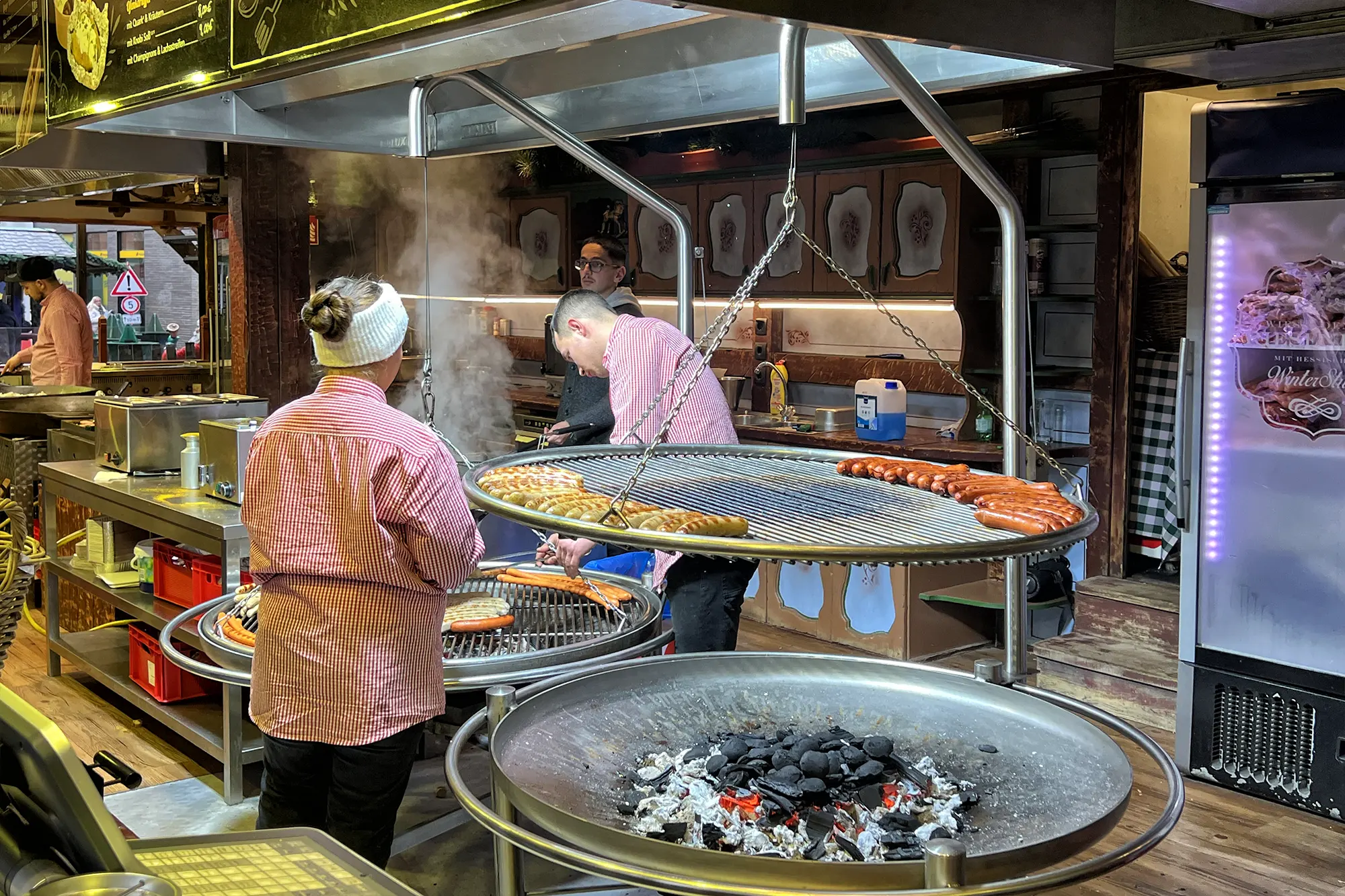 Een kraam die opviel was de Marktbäcker, waar vers brood uit de houtoven wordt bereid. De Dinnete met aardappel, kaas, spek of ui is voor velen een populaire keuze en past goed bij de winterse periode. Verder vind je diverse soepen, ovenaardappels met kwark en brood met raclettekaas.