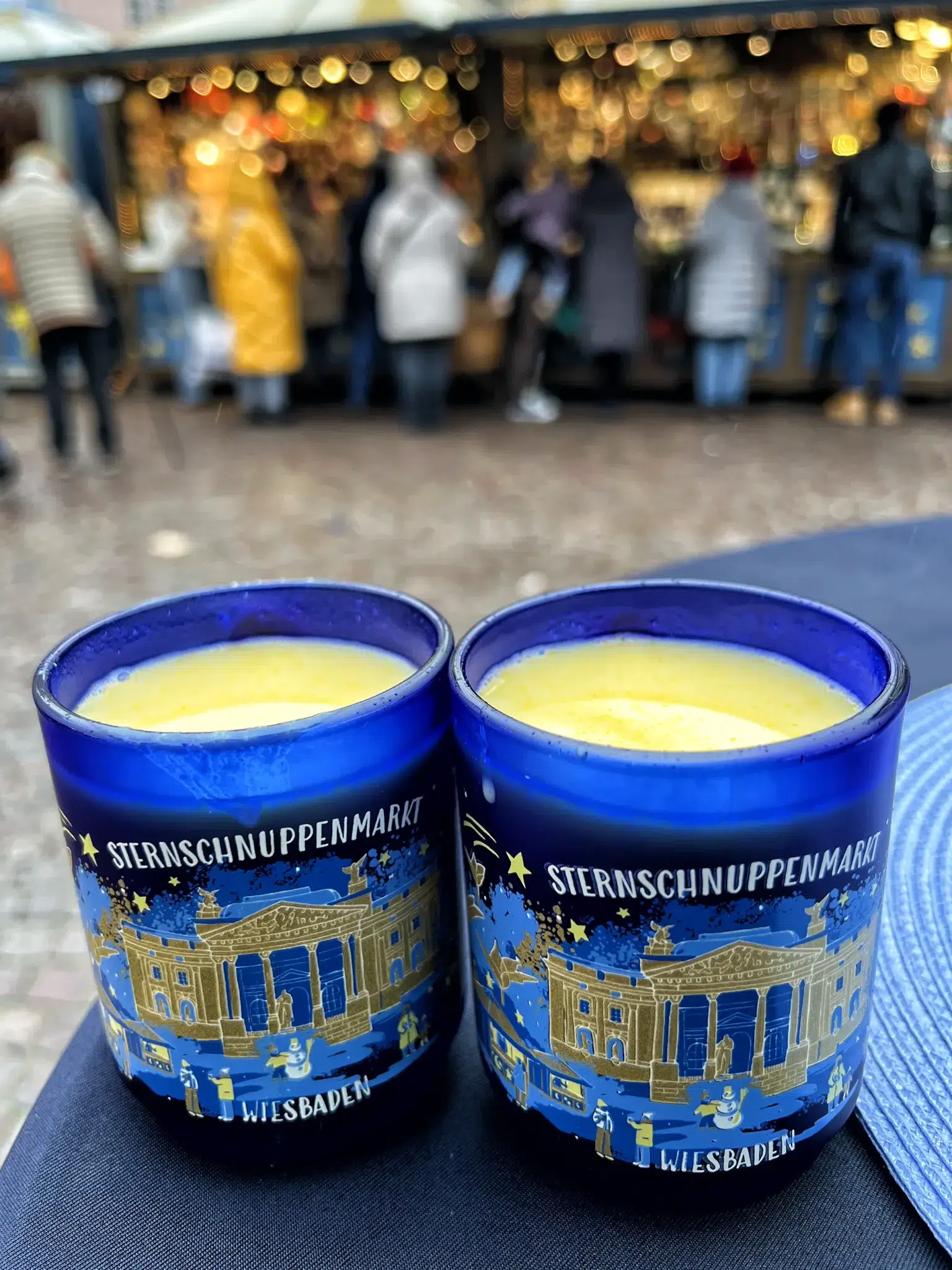 De glühwein wordt geserveerd in speciale Sternschnuppenmarkt-mokken. Veel bezoekers nemen de mok uiteindelijk mee als souvenir, waardoor de borg vaak niet wordt teruggebracht maar wordt ingewisseld voor een blijvende herinnering aan de kerstmarkt.