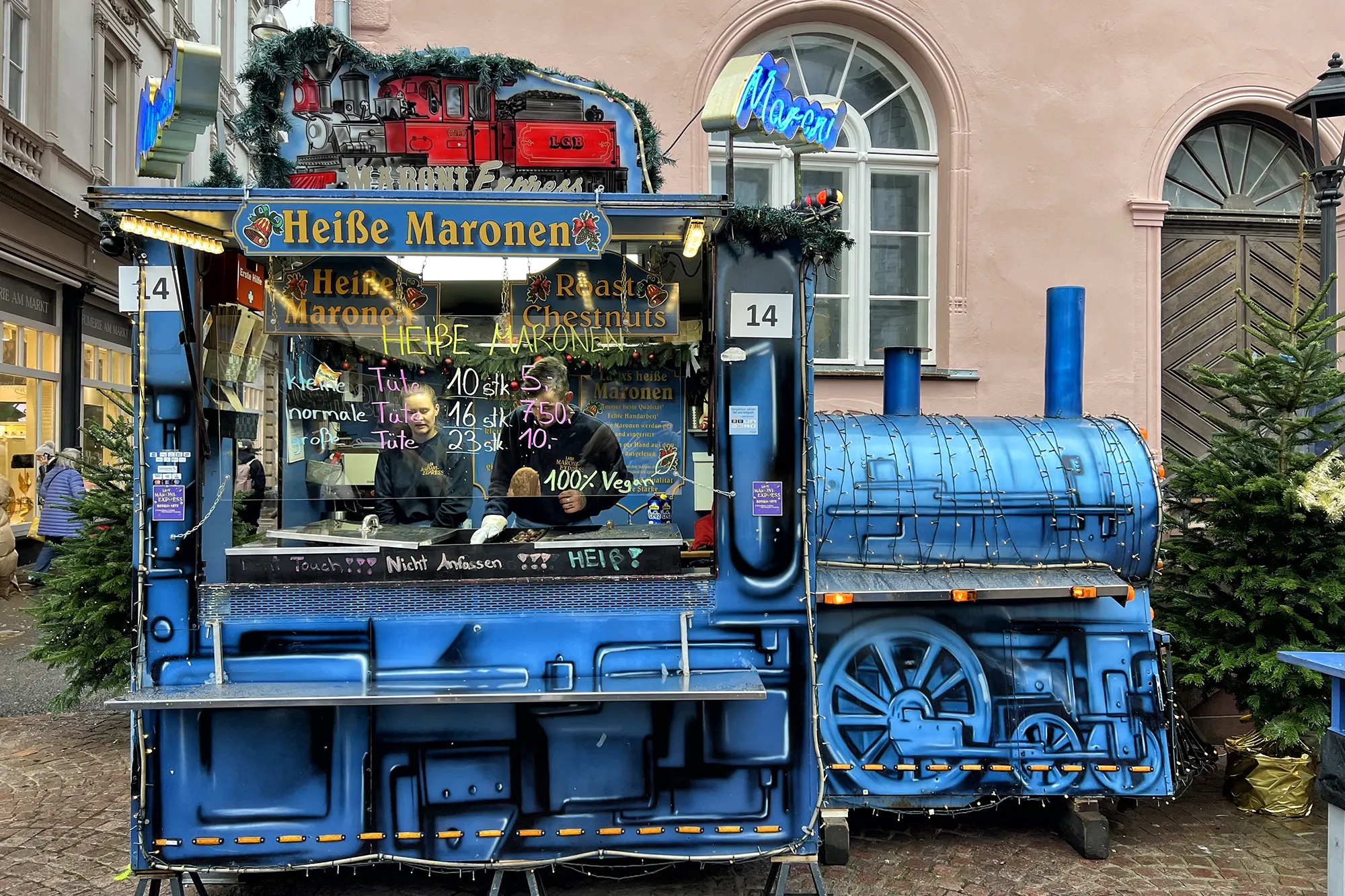 Op de Mauritiusplatz vind je het grote reuzenrad met verwarmde gondels en de Hessische Winterstubb. Hier heb je uitzicht over de verlichte binnenstad en kun je terecht voor warme dranken en regionale gerechten. Dit deel blijft geopend tot in januari, dus ook na de officiële kerstdagen is er dus nog iets te beleven.
