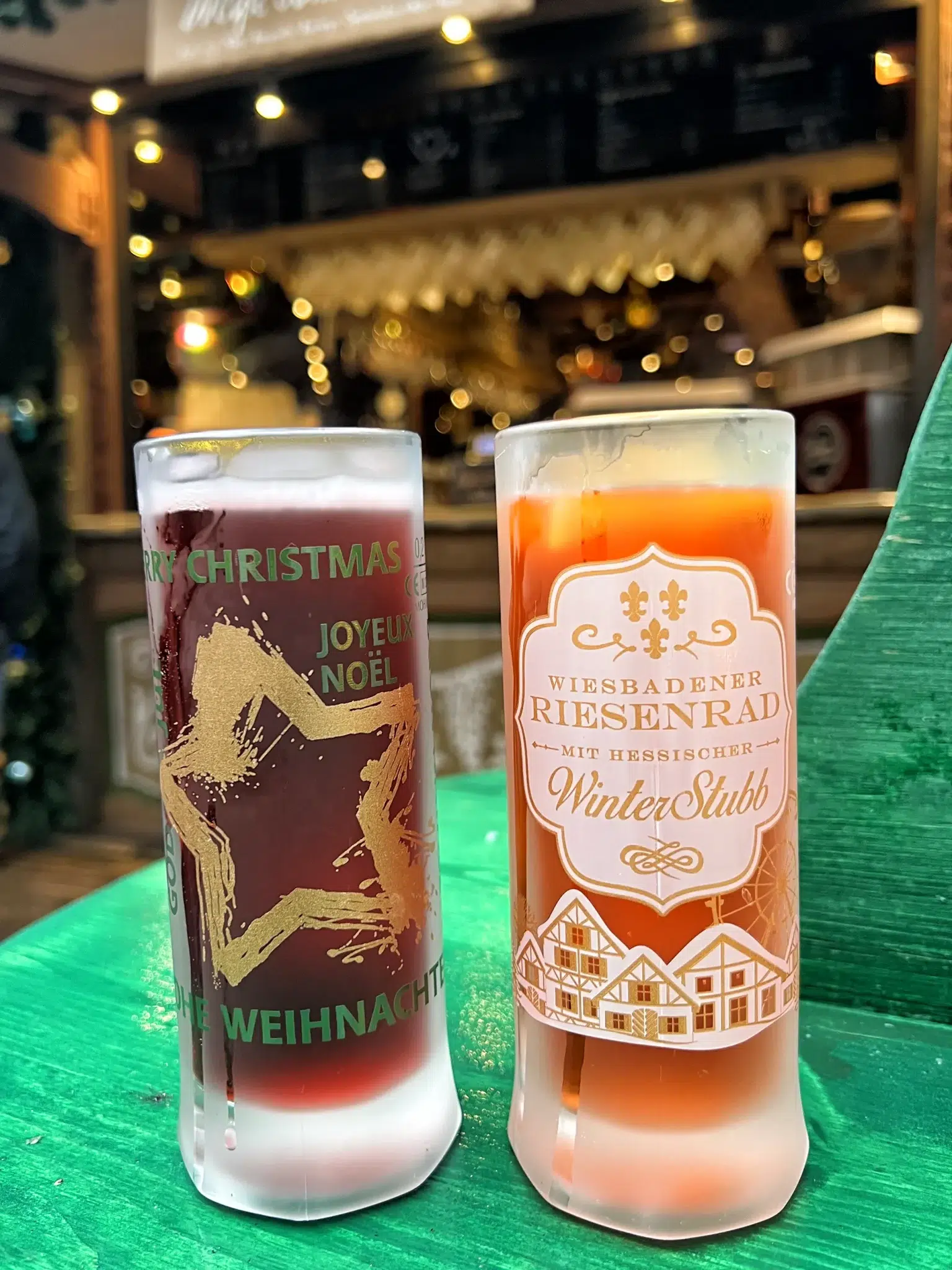 Naast de standaardvariant worden er onder andere witte glühwein, fruitige varianten en dranken met likeur aangeboden. Een aantal opvallende combinaties die je hier tegenkomt zijn een witte Glühwein met limoncello, een Orangepunch met gember of een variant met kers en een scheutje Amaretto. Wie liever iets anders drinkt, kan kiezen voor warme cocktails, Feuerzangenbowle of een regionale specialiteit: hete Apfelwein, ook bekend als Ebbel-Glühwein. Voor kinderen en iedereen die geen alcohol drinkt, zijn er meerdere alcoholvrije alternatieven zoals warme chocolademelk en Kinderpunsch.