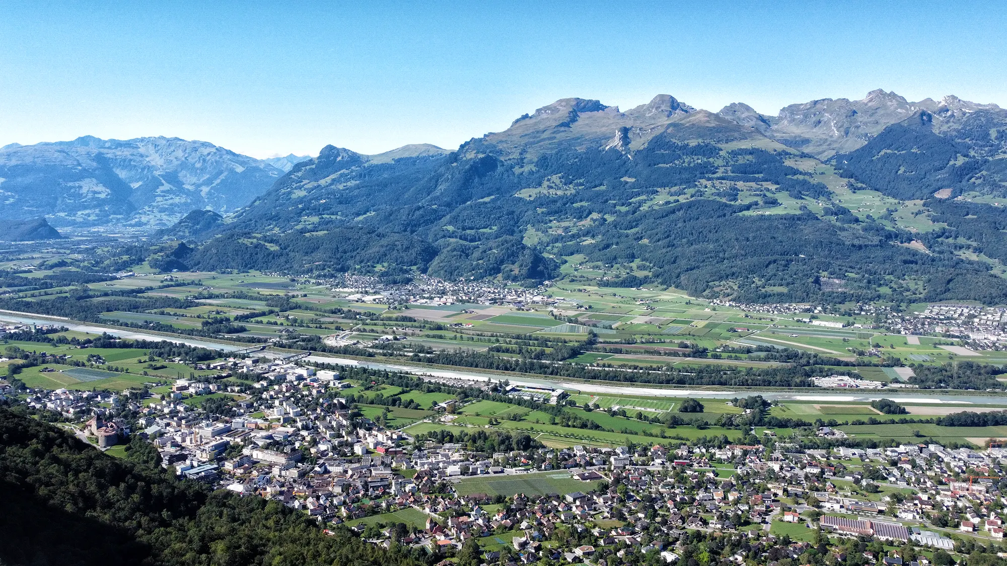 Na de kleine beklimming gaat het bergafwaarts richting Vaduz. Onderweg passeren we de ruïne van Burg Schalun. Dit kasteel is een van de vijf kastelen in Liechtenstein, waarvan er drie een ruïne zijn. Iets verderop passeren we een uitzichtplatform met zicht op vooral op Schaan. Door de hoge boomtoppen is Vaduz nauwelijks zichtbaar.