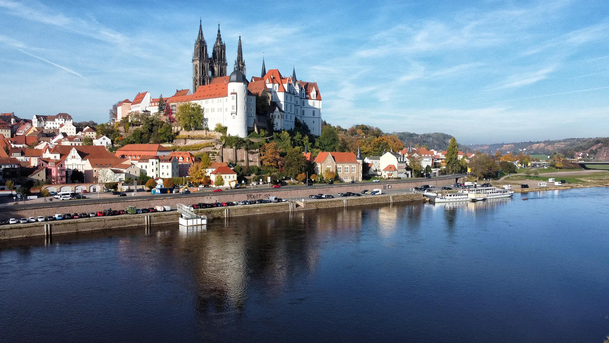 Voor het mooiste uitzicht op Meissen wandel je naar de overkant van de Elbe. Vanuit de Altstadt steek je de Altstadtbrücke over, waar je een fantastisch panorama hebt op de Burgberg met de Albrechtsburg en de Dom van Meissen. Bij rustige weersomstandigheden weerspiegelen de iconische gebouwen prachtig in het water, wat zorgt voor perfecte foto’s. Aan het einde van de brug kun je via een paadje afdalen naar de oever van de Elbe.
