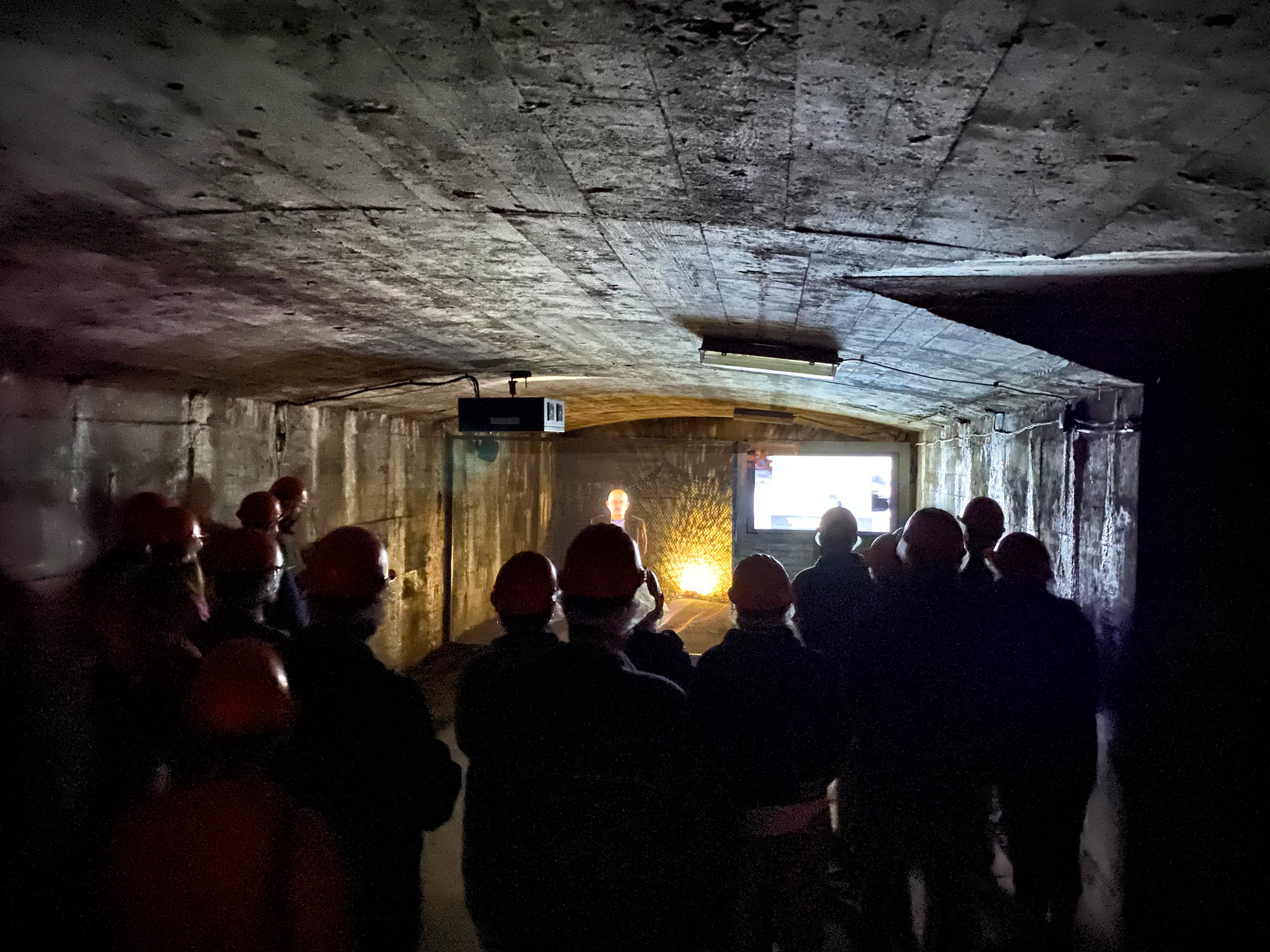 De grot is vochtig en op de grond liggen plassen water. De helmen zijn geen overbodige luxe, want het plafond is op sommige plekken behoorlijk laag. We moeten goed opletten dat we onze hoofden niet stoten. Tijdens de rondleiding stoppen we meerdere keren om korte films te bekijken die als projecties op de muren worden getoond. Gelukkig hebben we een audioguide, want zowel de films als de uitleg van de gids zijn volledig in het Pools. Via de audiotour horen we meer over het begin van Project Riese en de rol van de gevangenen bij de bouw van dit ondergrondse complex.