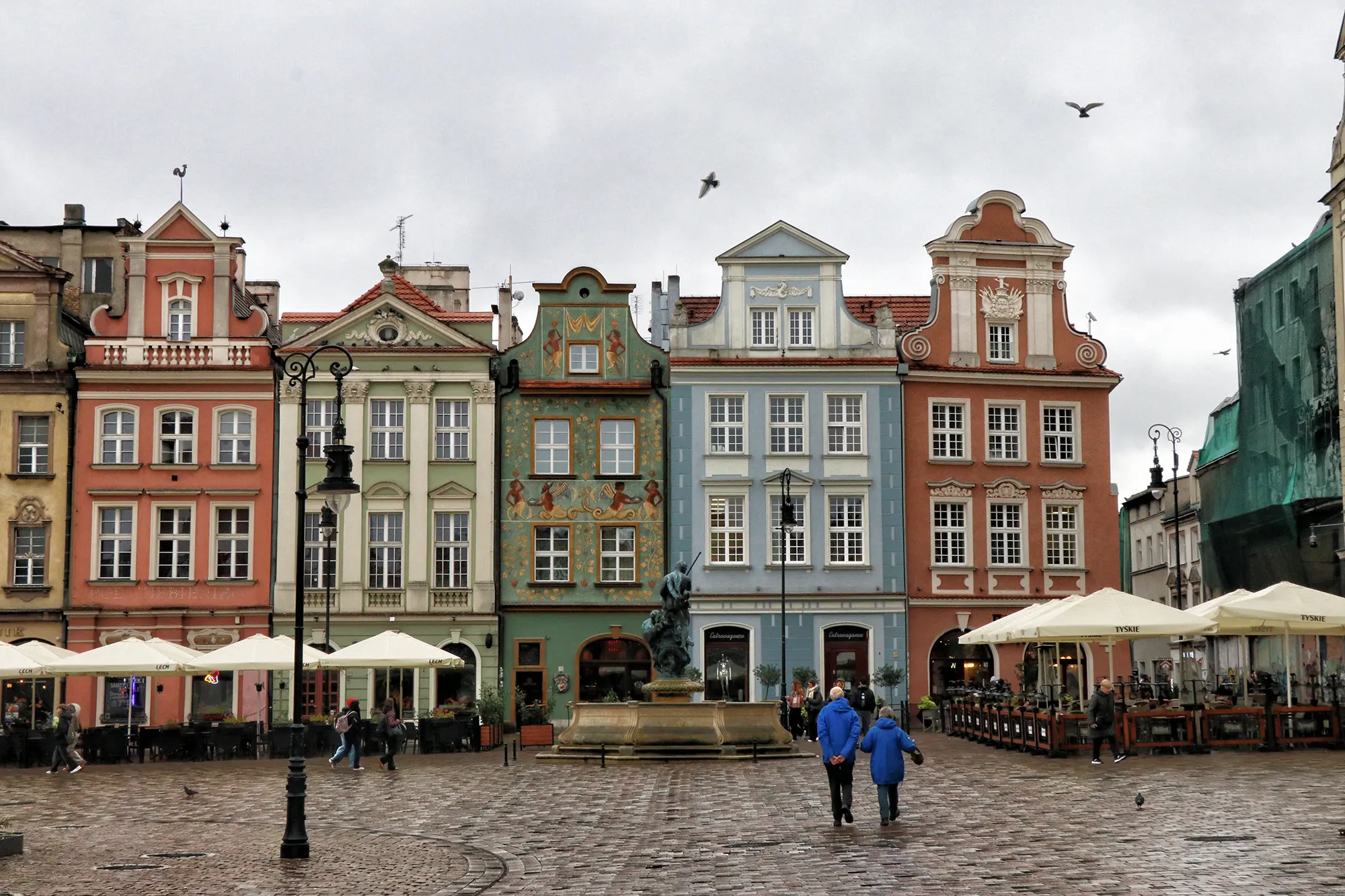 Op de hoeken van het plein staan vier fonteinen met mythologische figuren: Hercules, Neptunus, Apollo en Proserpina. Rondom het plein vind je cafés, terrassen, kleine winkeltjes en restaurants. De Oude Markt mag je zeker niet overslaan tijdens je stedentrip naar Poznań.