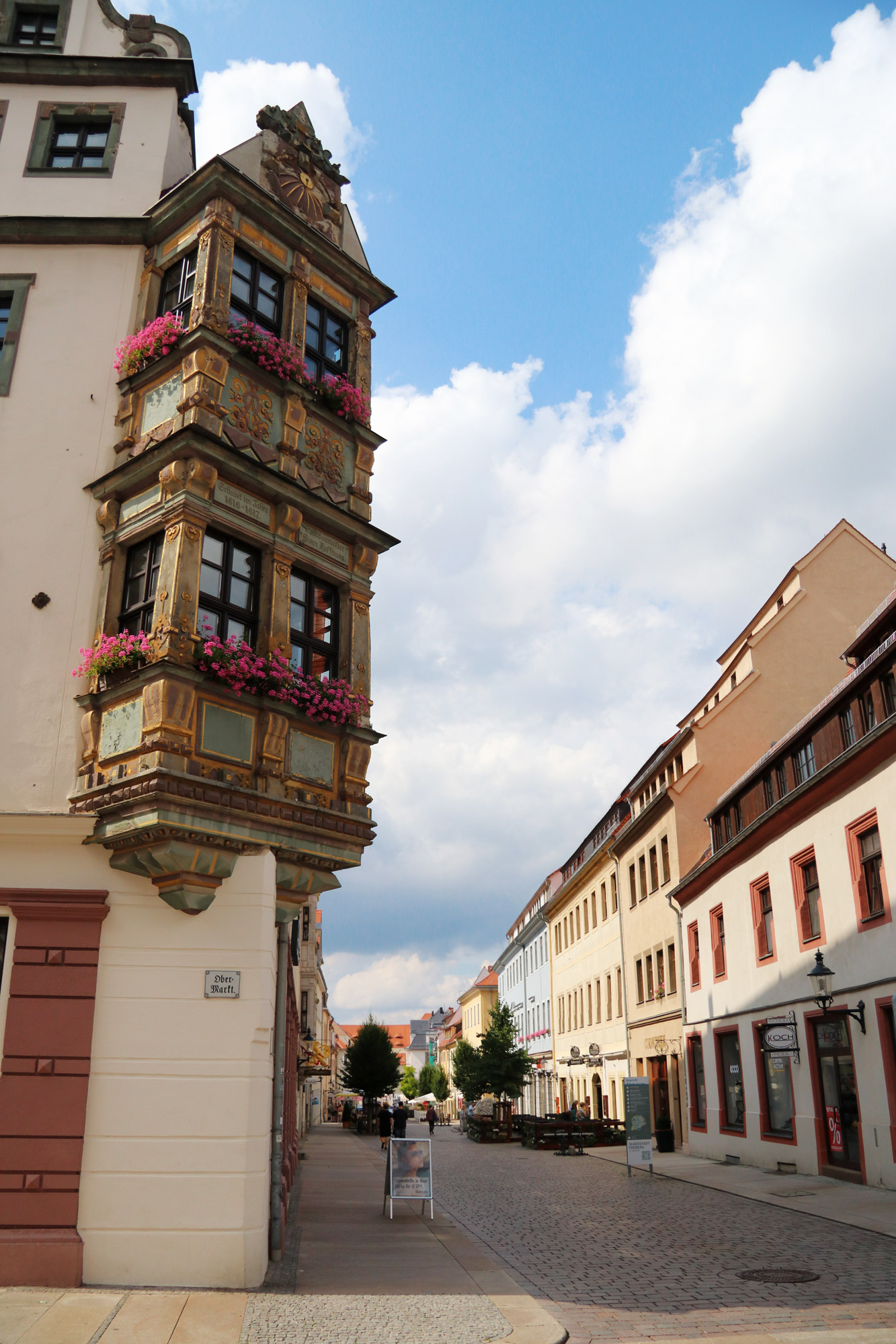 In de 15e eeuw was de Obermarkt het toneel van een bloederig tafereel. Kunz van Kauffungen werd twee dagen vastgehouden in het Rathaus nadat hij twee Saksische vorsten had ontvoerd. Hierna werd hij op het plein onthoofd. Een aandenken hiervan is nog altijd te zien. Kijk eens goed naar de gele erker boven de ingang van het Rathaus. Hier is een zogenaamde ‘Gaffkopff’ te zien, een beeld van een hoofd dat op de façade te zien is. Het hoofd kijkt naar het plein en is gericht op de plek waar een donkere pleistersteen is te vinden. Het hoofd van Kunz zou hierheen zijn gerold na de onthoofding.